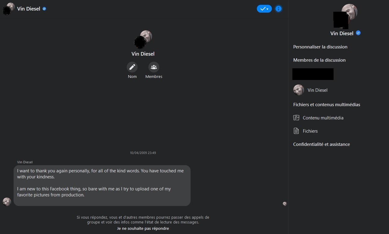 Et tu lui avais rien répondu ??J'ai lâché un "vu" a Vin Diesel, et toi ?