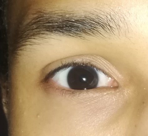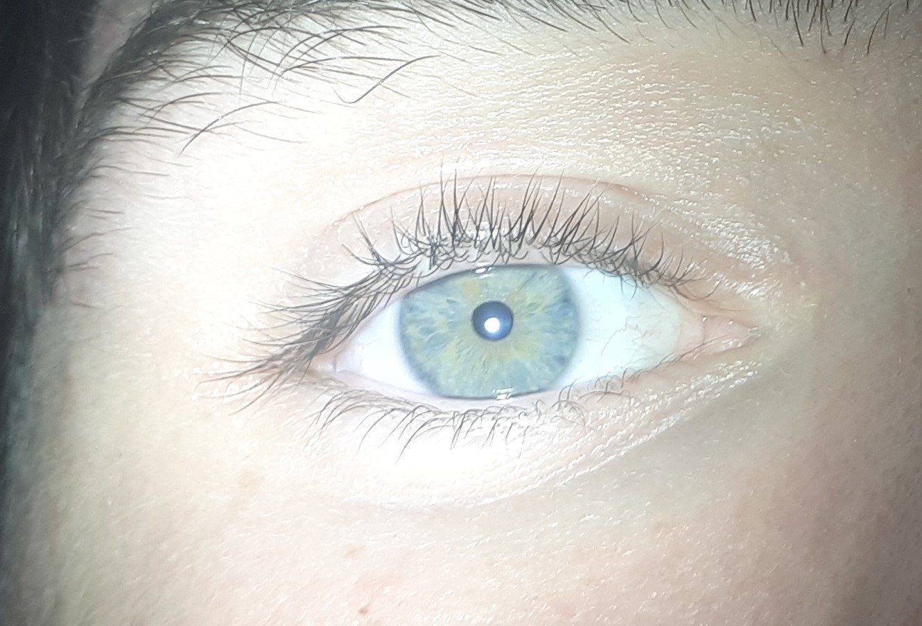 En fait je me suis mis en face d’un miroir, donc l’oeil face au dos de mon téléphone, et par le biais du miroir, j’essayais de positionner au mieux le téléphone, et j’ai pris plusieurs photos avec le flash.