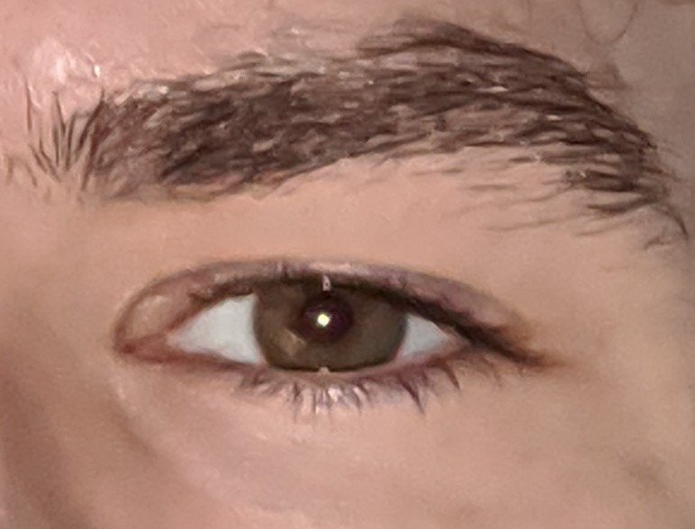 En fait je me suis mis en face d’un miroir, donc l’oeil face au dos de mon téléphone, et par le biais du miroir, j’essayais de positionner au mieux le téléphone, et j’ai pris plusieurs photos avec le flash.