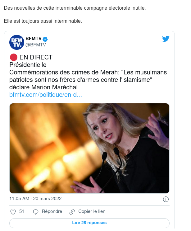 En tout cas, c’est l’axe de Zemmour : les arabes sont nos alliés contre les arabes.