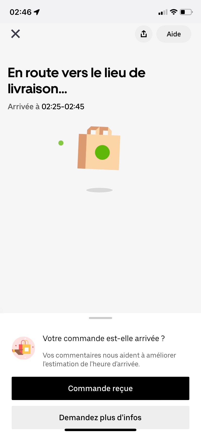 Quand t’as ce message ça veut juste dire que c’est un livreur du restaurant qui va amener ta commande, et non pas un type d’uber eats, d’où le fait que tu ne puisses pas le géolocaliser.