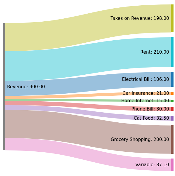 J'ai pas le RSA, mais je vis avec peu. Voici un graph rapide de mon budget mensuel, mais qui me permet de bosser 15H par mois au total et d'avoir beaucoup de temps libre.