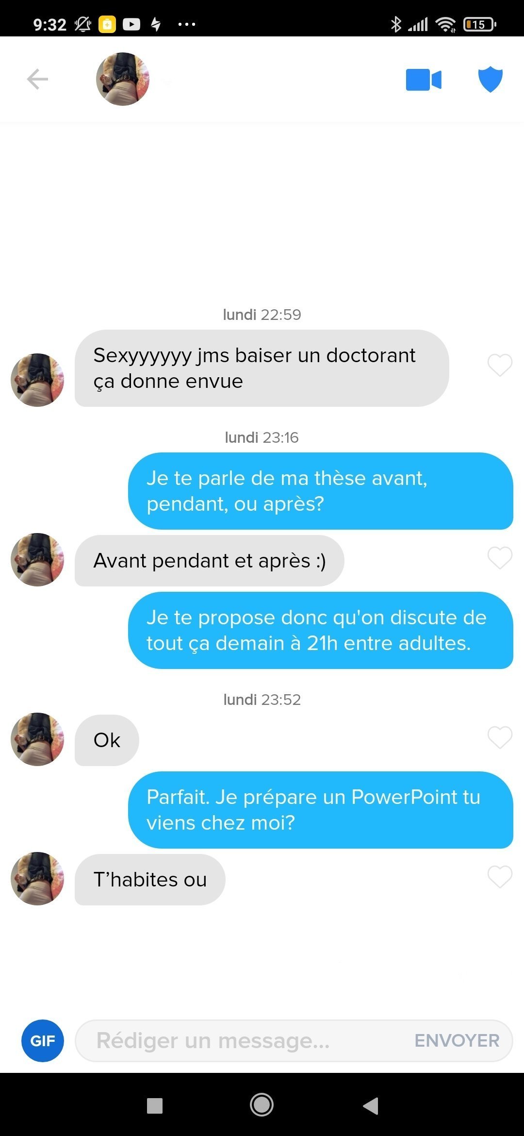 No fake 100% il y a 2 semaines jai baisé une 2003 qui me parlait de mon doctorat aussi elle a cuck son mec avec moi, dimanche matin en sortie de boîte une meuf a voulu quon parle de ma vie pendant 15 bonnes minutes, maintenant ça