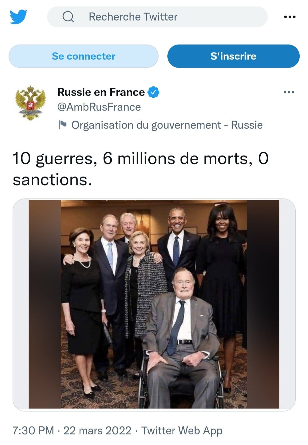 jesper que son alzheimer va pas lui faire dire le contrair demain, car sa façon de verser de l’esence sur le confli depuis le debut c minable, lui sen fou c pas les americain qui meurt mais les ukrainiens