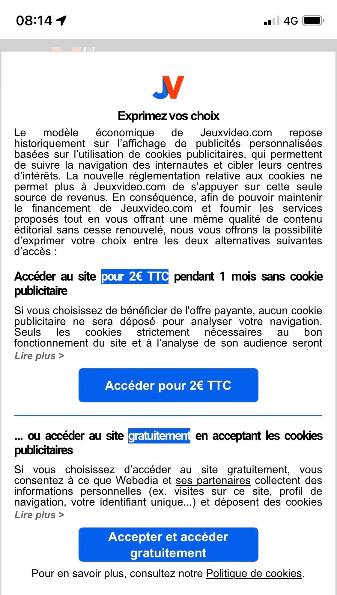 Non car accéder gratuitement = accepter de te faire traquer par les pédos-tarés de chez webedia