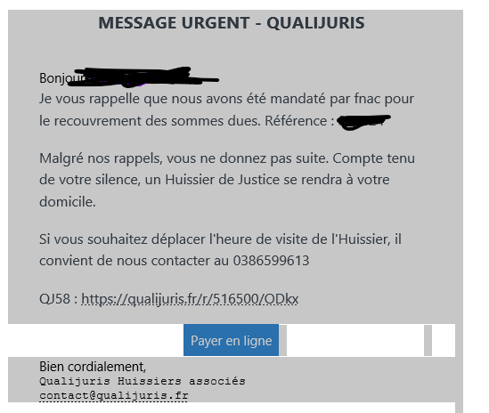 C'est toi qui ne comprend pas qu'avec ce mail on est dans une phase antérieure à l'exécution forcée. Une simple modalité de recouvrement amiable de la dette de l'auteur que les huissiers sont à même de réaliser.