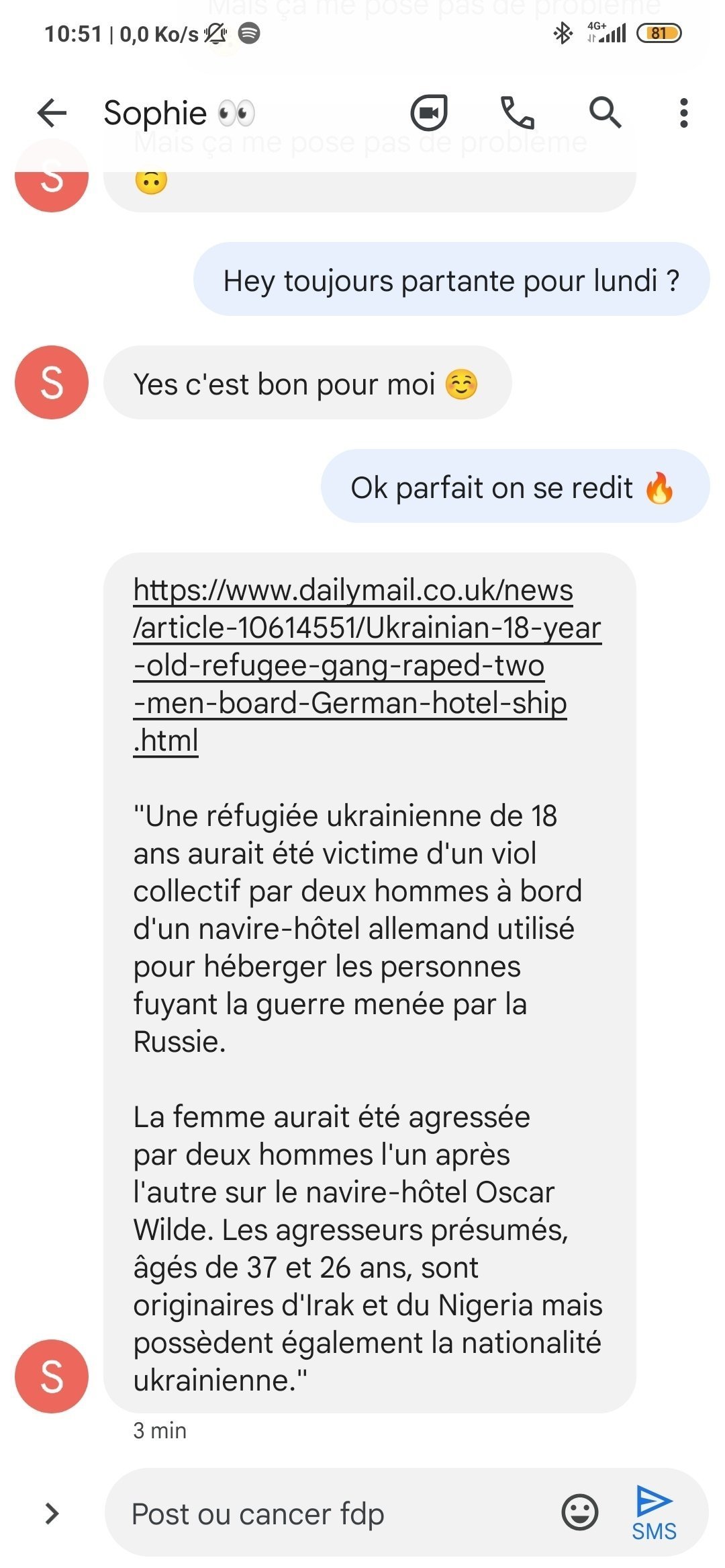 Le 04 avril 2022 à 14:29:47 :Elle veut que tu t'excuses
