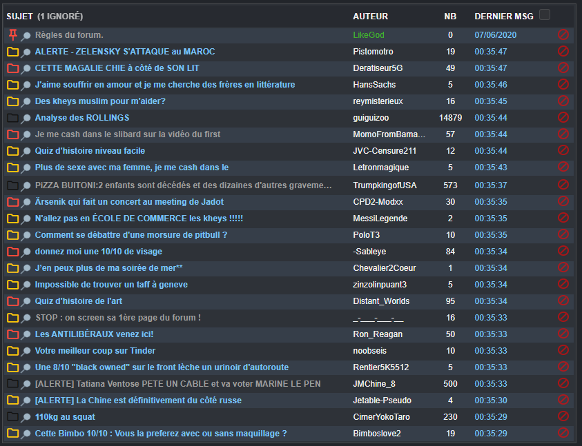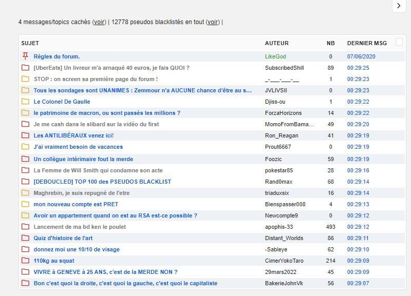 Combien de pseudos blacklistés sur mon topic ?