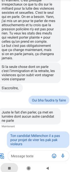 C'est ce que je vais faire en tout cas. Tout sauf Macron, à part pour Mélenchon, même Macron est mieux.