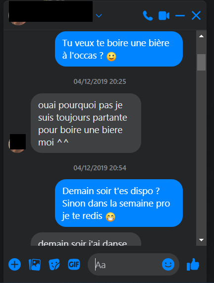 "Salut c'est X de l'autre soir, ça te dit d'aller boire un verre cette semaine ?"