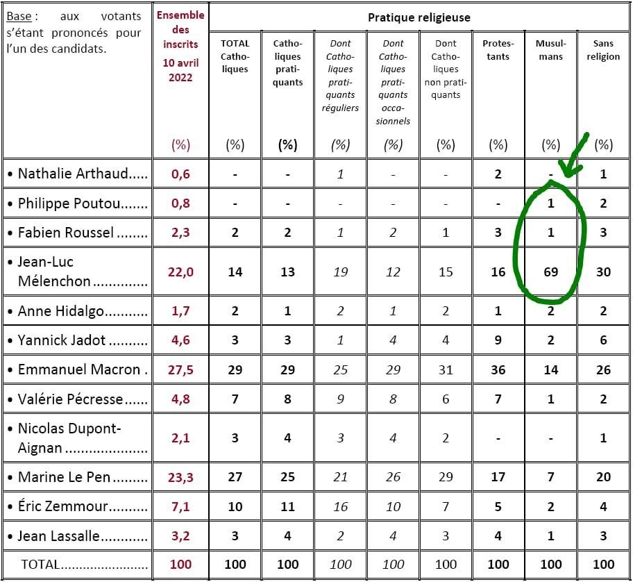 Le 12 avril 2022 à 09:02:47 : À 70%, les musulmans ont voté en masse pour Mélenchon.Alors ça vous fait quoi les bots LFI ?