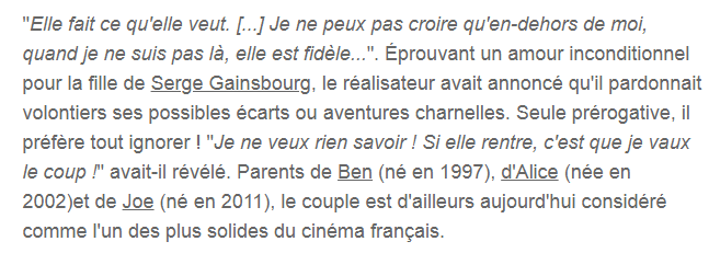 Pour ceux qui le connaissent pas c'est le mec de Charlotte Gainsbourg (la meuf qui a fait Nymphomaniac) et le mec balance ça a un journal sans pression.