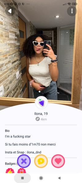 Mais a croire tu montre un screen surprenantUn profil sur 4 sur Tinder = moins de 1m80 vien pas me parler