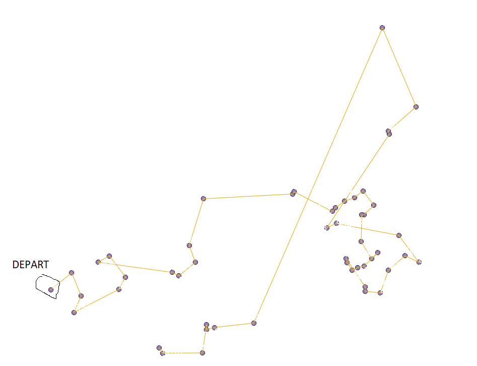 Je suis sur un terrain vague. Je dois placer au sol 50 points au GPS dont je connais les coordonnées XY. Je souhaiterais marcher le minimum. Je cherche donc le trajet le moins long pour implanter tous les points. Voilà pour le contexte.