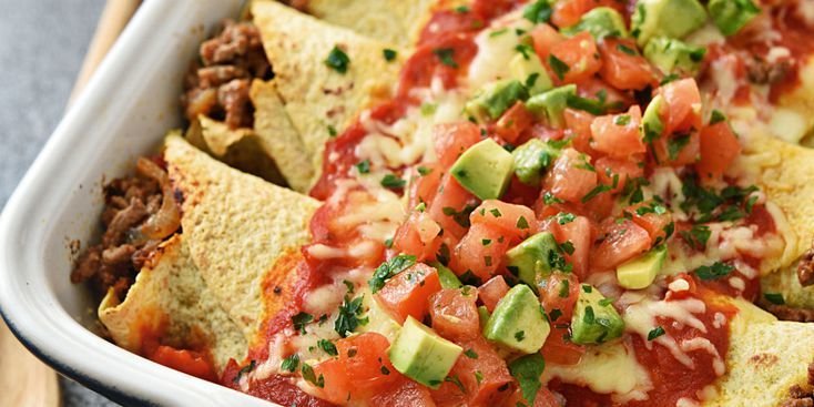 Les enchiladas sont composés de tortillas de maïs recouvertes de sauce salsa ou de mole servies chaudes. Je vous met une photo pour vous laisser imaginer :