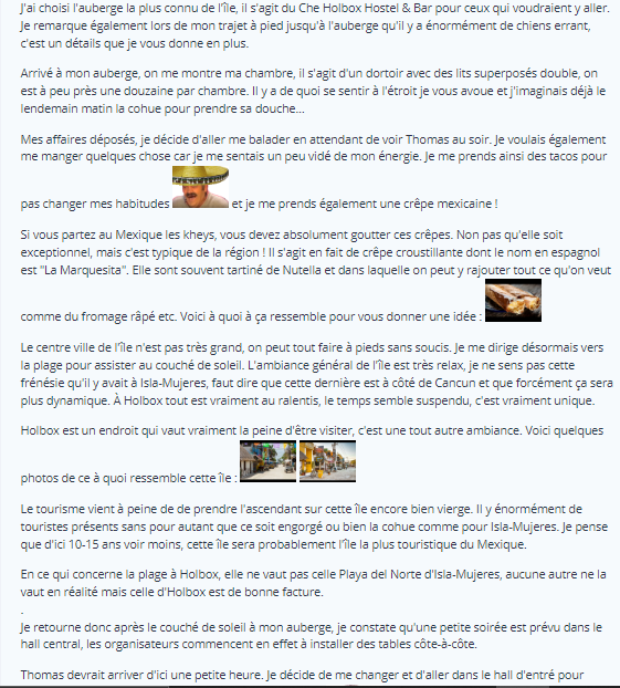 Derrière mon écran à l'heure où je vous parle il m'est difficile d'écrire ces lignes...car la vie actuelle que je mène en France après mon retour de voyage n'est pas celle que je souhaite. J'ai gouté au bonheur au Mexique et tout les jours que je mène depuis mon retour de ce voyage m'est devenu encore plus insupportable...