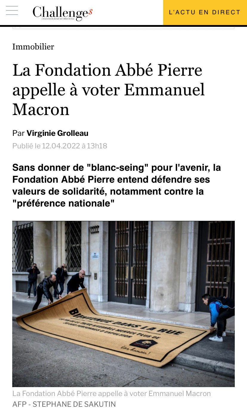 La fondation abbé pierre avait déjà appeler à voter macron donc les tract à emmaüs ça me choque même plus
