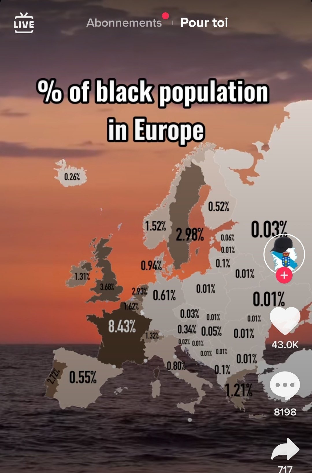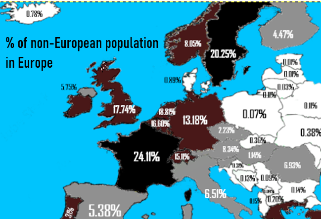 Et y a plus que 24% d'extra-européens en France, même un sociologue français avait parlé de 42% en comptant les métis
