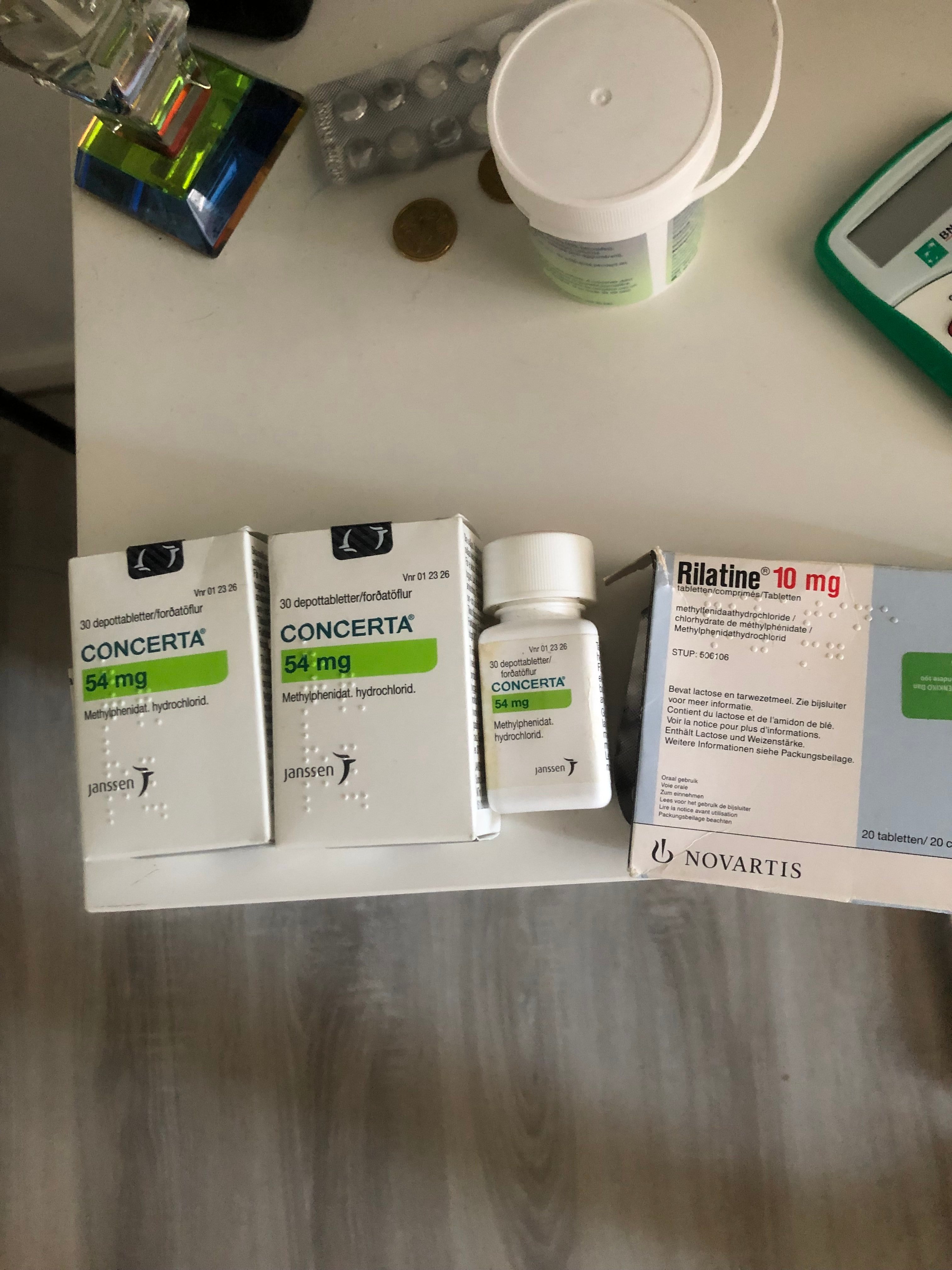 Methylphenidate, si tu prends du concerta c'est une forme à libération prolongée d'où les effets plus étalés dans le temps contrairement à la ritaline qui est une forme à libération prolongée. Je tourne à 18mg aussi (concerta)