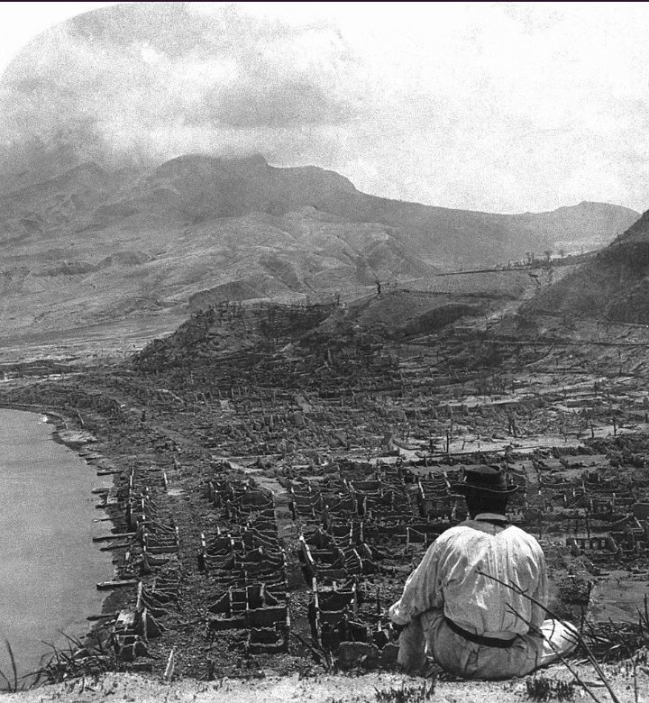 30 000 morts, la capitale de l'île et aussi la plus belle ville des Caraïbes rayée de la carte.Il est pas censé avoir une période de 100 ans ce volcan ?