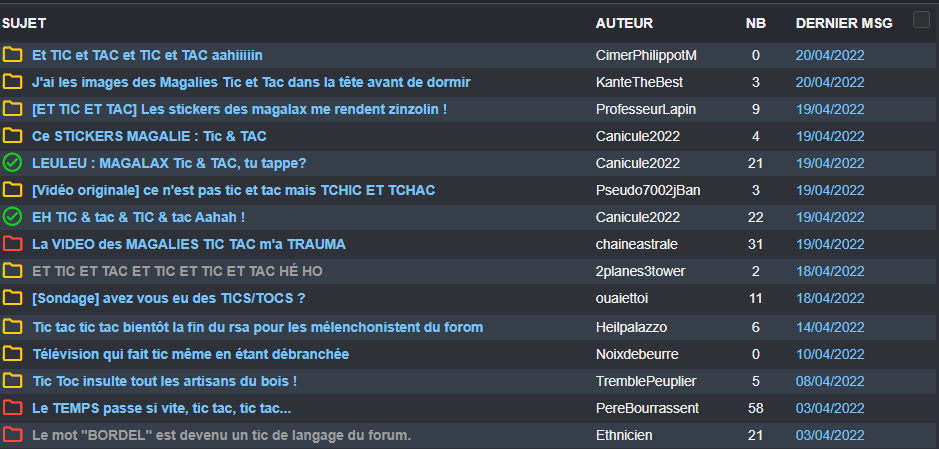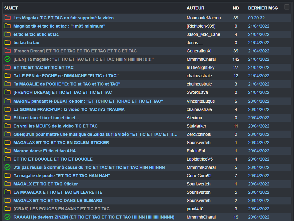Le 22 avril 2022 à 00:46:54 :C'est TCHIC ET TCHAC et pas TIC TAC d'abord