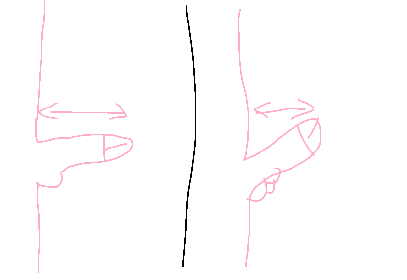 Par le dessus, perpendiculairement à ton corps. Tant pis pour la courbure, sauf si c'est un arc de cercle ça change pas grand chose.