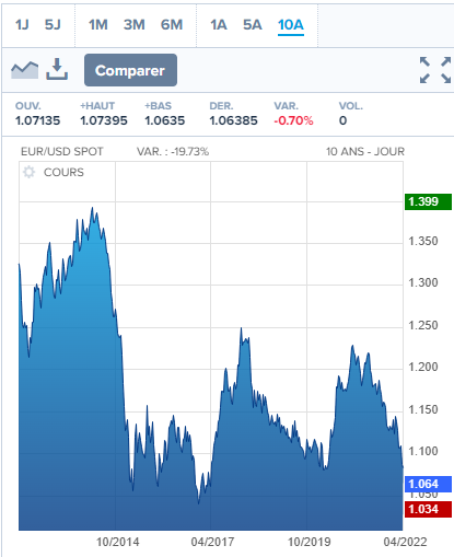 L'argent, immo des français, + salaires touchés a perdu 20% en 10 ans. Dont 7% depuis le 1er Janvier, et ça continue de baisser.