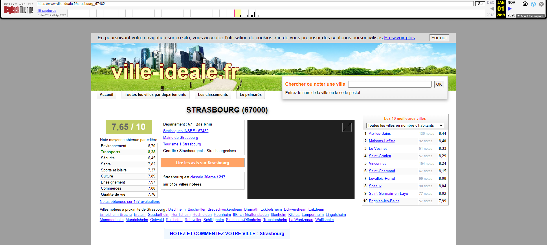 Janvier 2019 , Top 20 ville de france , Notes excellentes partout