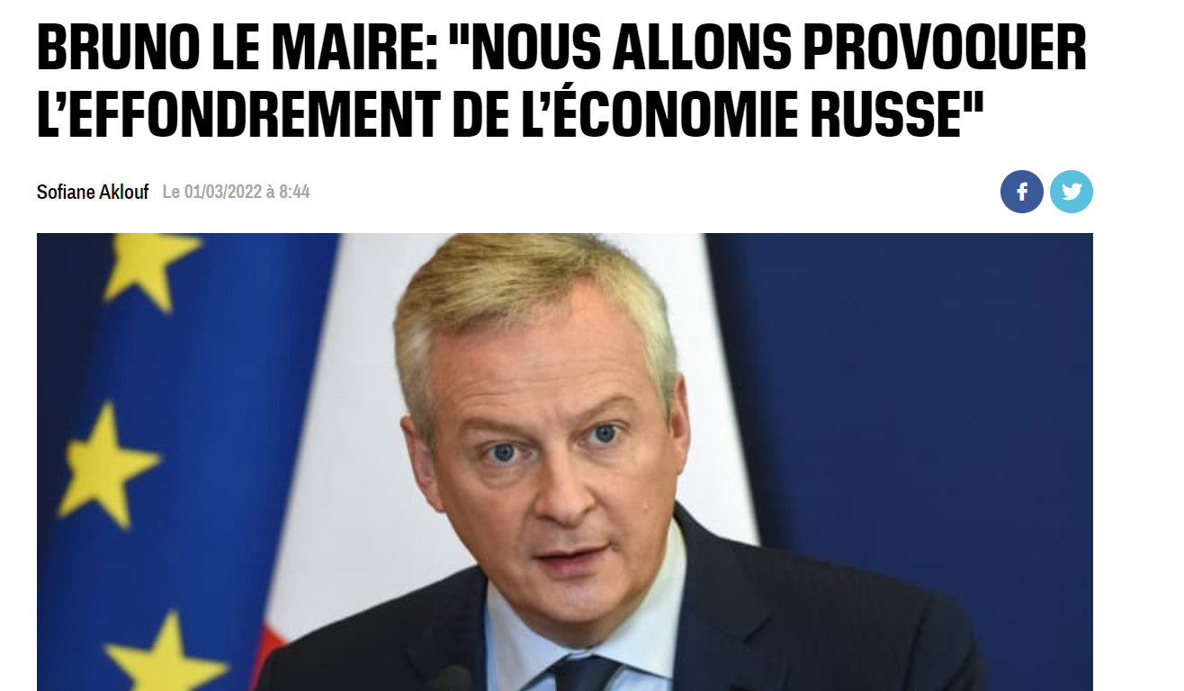 La Russie a une économie plus autarcique que la France. En gros ils peuvent se débrouiller seul même si cela entraine un appauvrissement de la population. En ce qui nous concerne, si la BCE nous prive de l'argent magique, nous plongeons dans le chaos