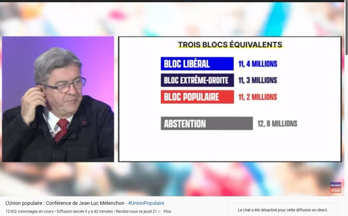 Nan parce que je sais que la majorité de la gauche c'est comme le second tour : possible mais trop serré. Du coup si pouvais y avoir trois bloc quasi équivalent ça pourrait être sympaIl met où Lassalle ?