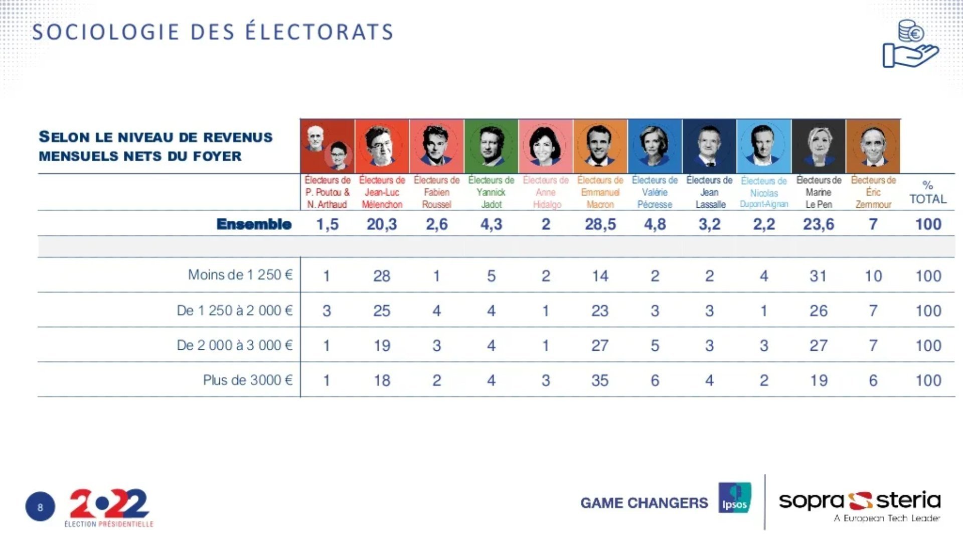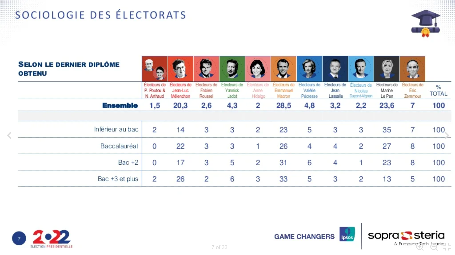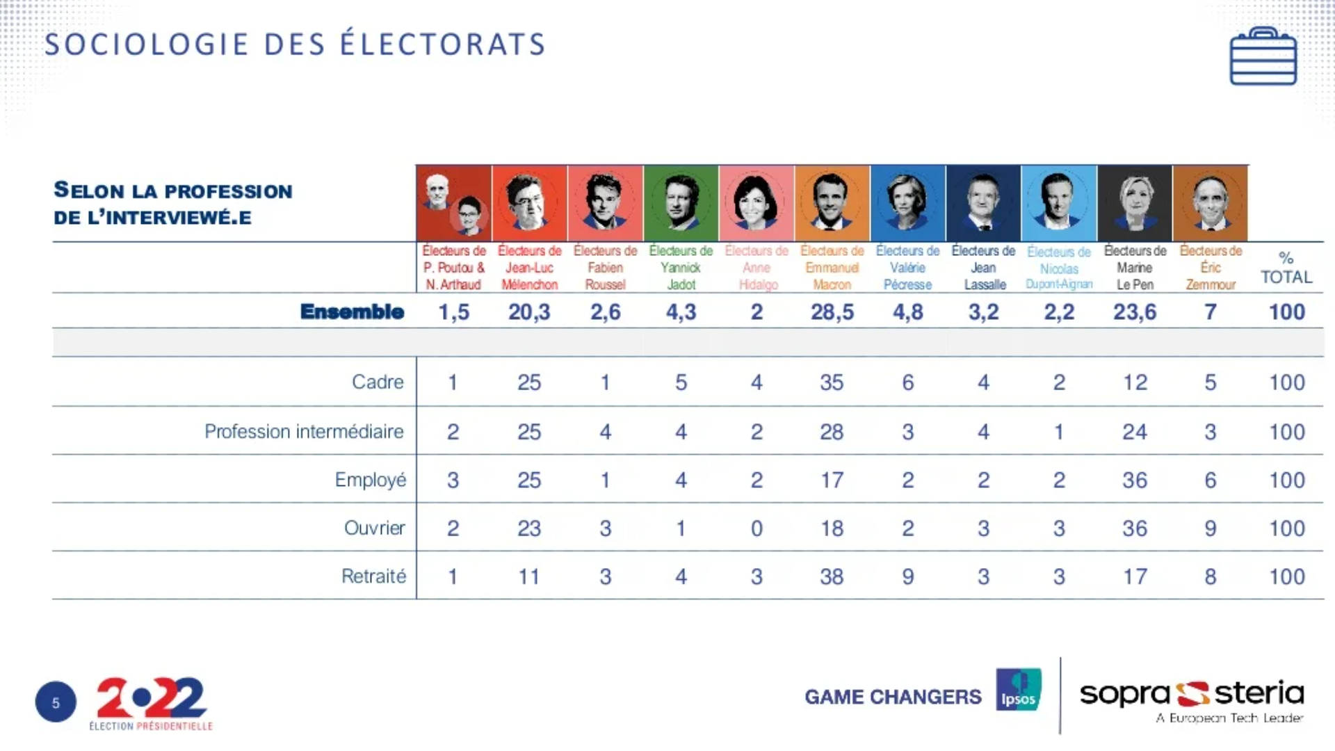 Les ouvriers sont majoritairement cher Marine, mais dire qu'ils ont disparu de l'électorat de Mélenchon c'est quand-même exagéré, même si ce dernier a principalement des voix chez les profs.