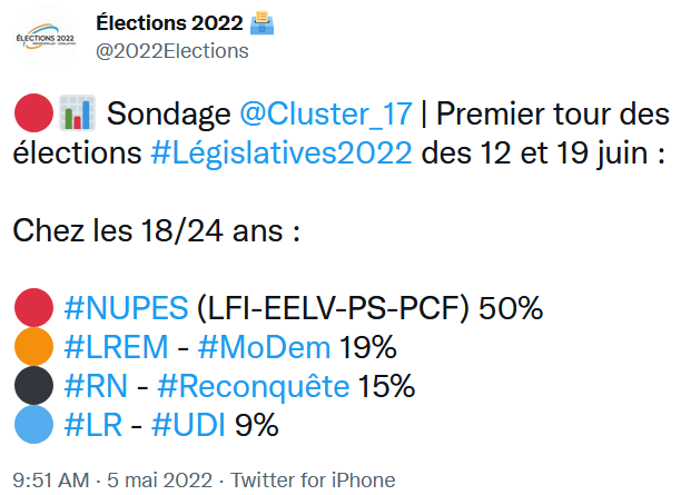 https://twitter.com/OlivierPerou/status/1522287646810296328Mais ça veut dire que si ils étaient majoritaire à l’assemblée, ils explosent direct quoi