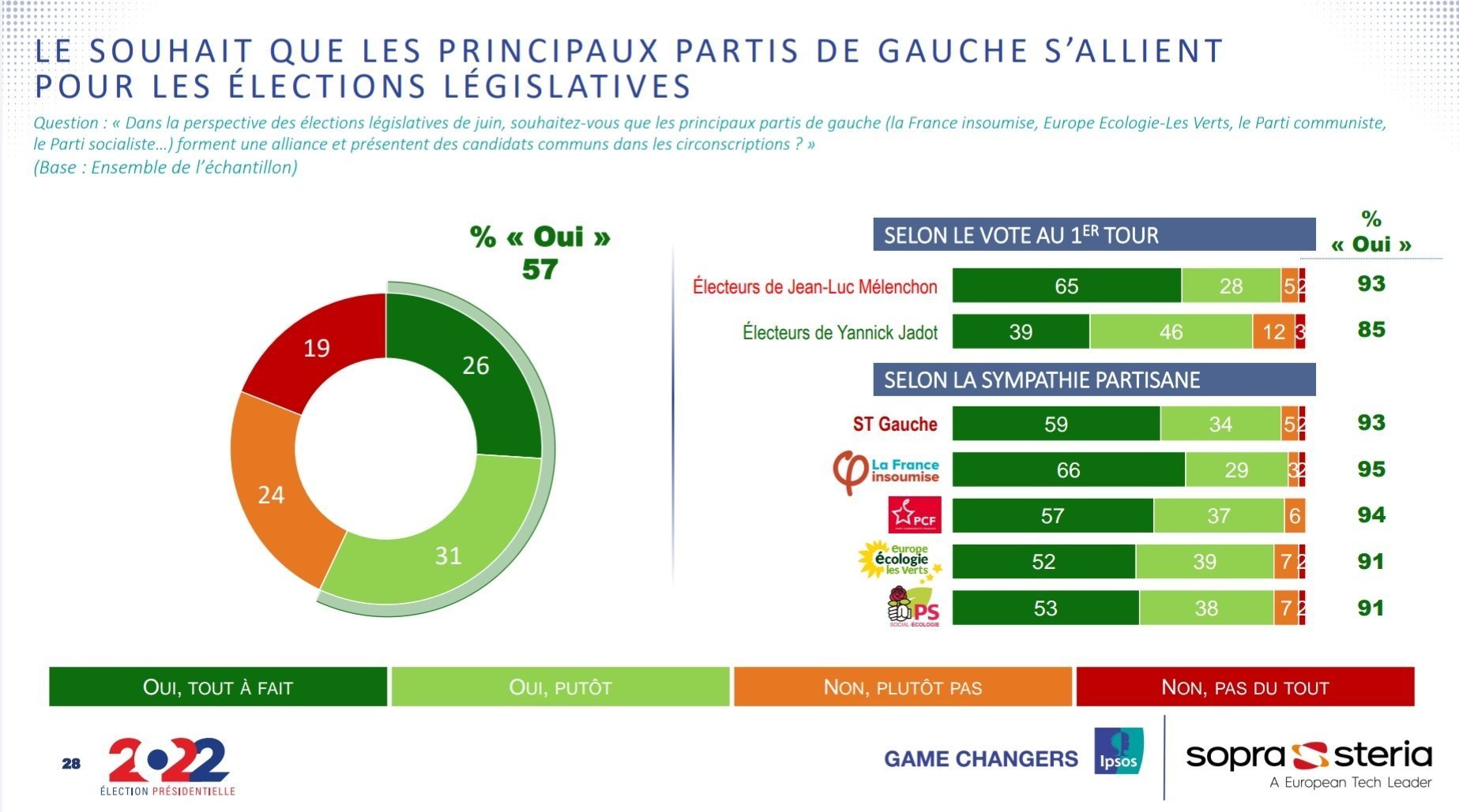 Faut croire que si : d'après une enquête Ipsos, 93 % des électeurs de gauche voulaient une alliance LFI-EELV-PCF-PS