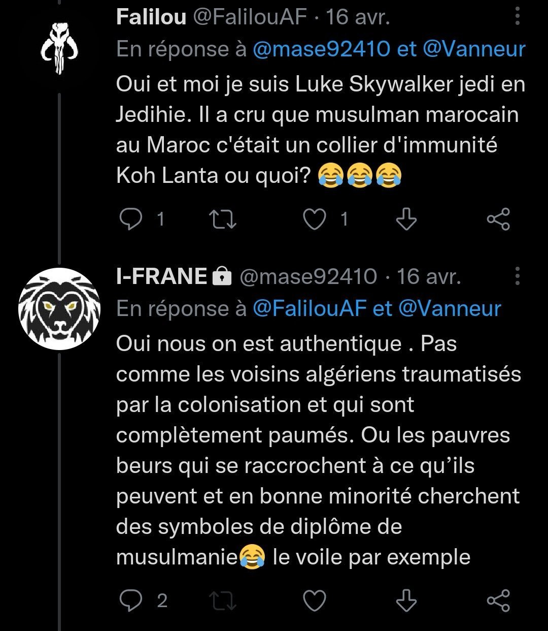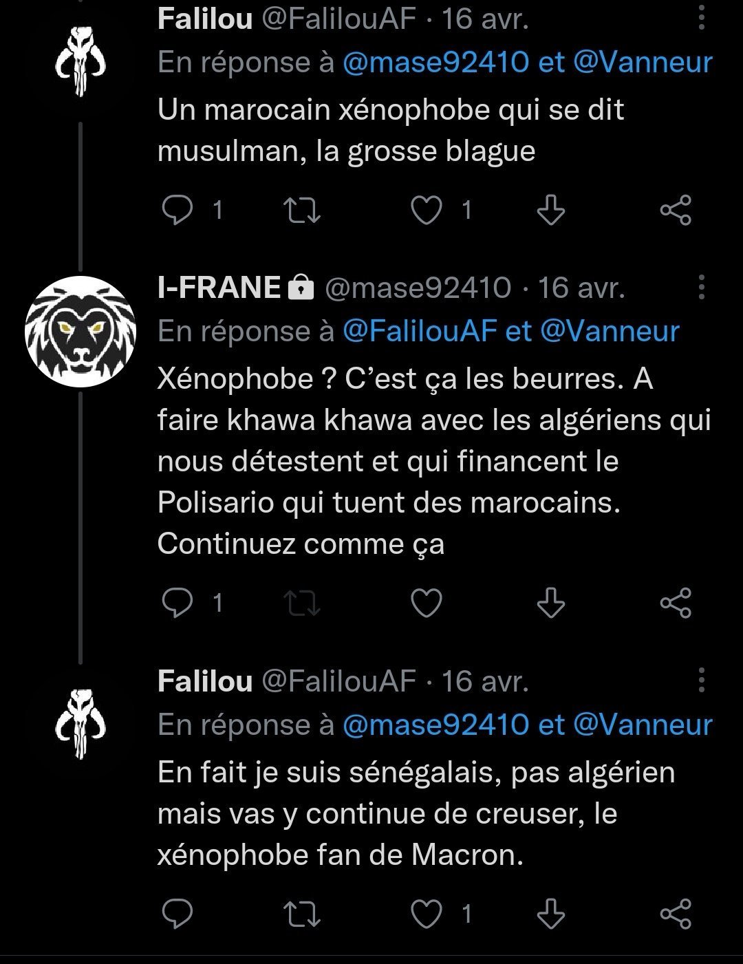 Ouaip et là je fouille dans son compte il s'est embrouillé avec d'autres rebeus. Il est muslim marocain et il déteste les algériensLe 09 mai 2022 à 14:42:33 :
