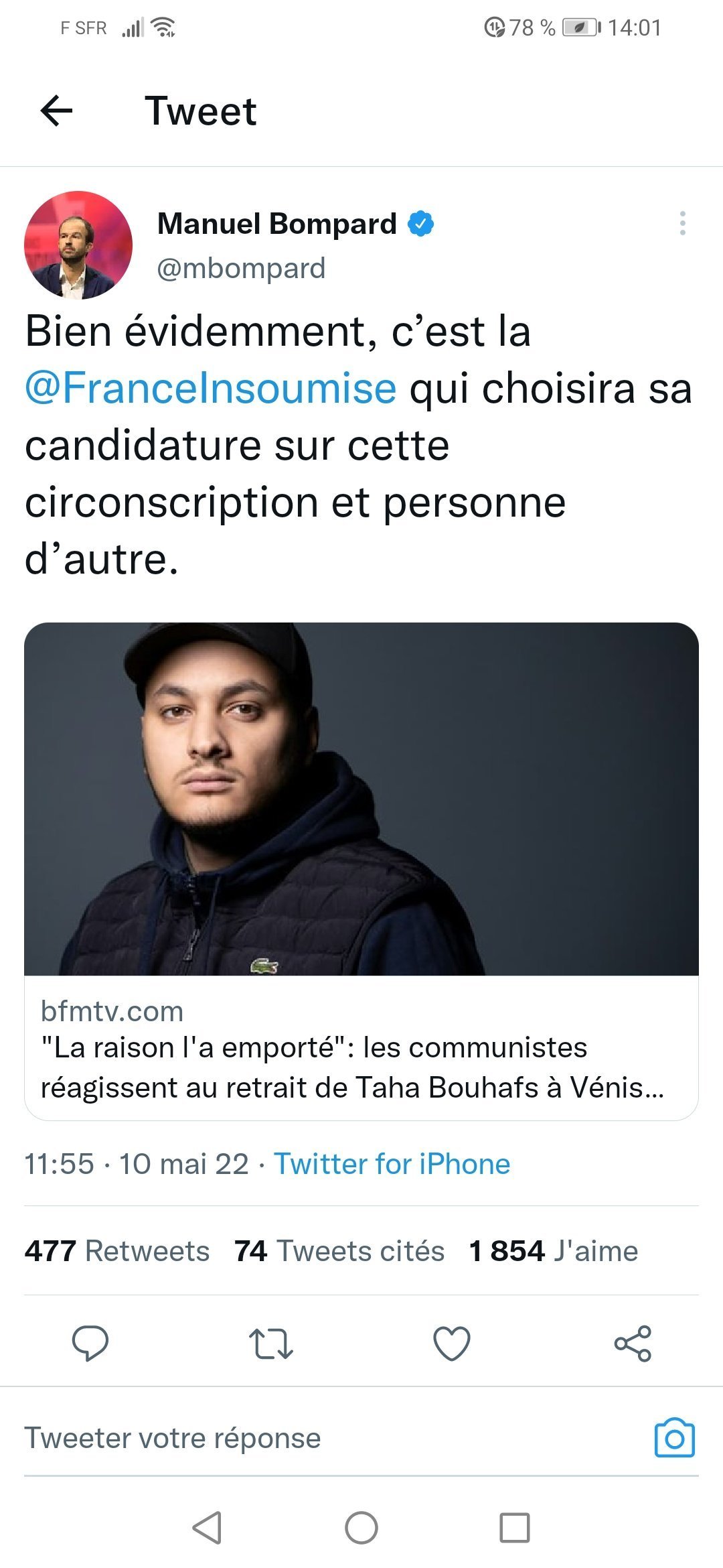 Tant mieux pour Taha Bouhafs, je ne voulais pas voter NUPES à cause de la présence de cette encu... de raciste et antisémite