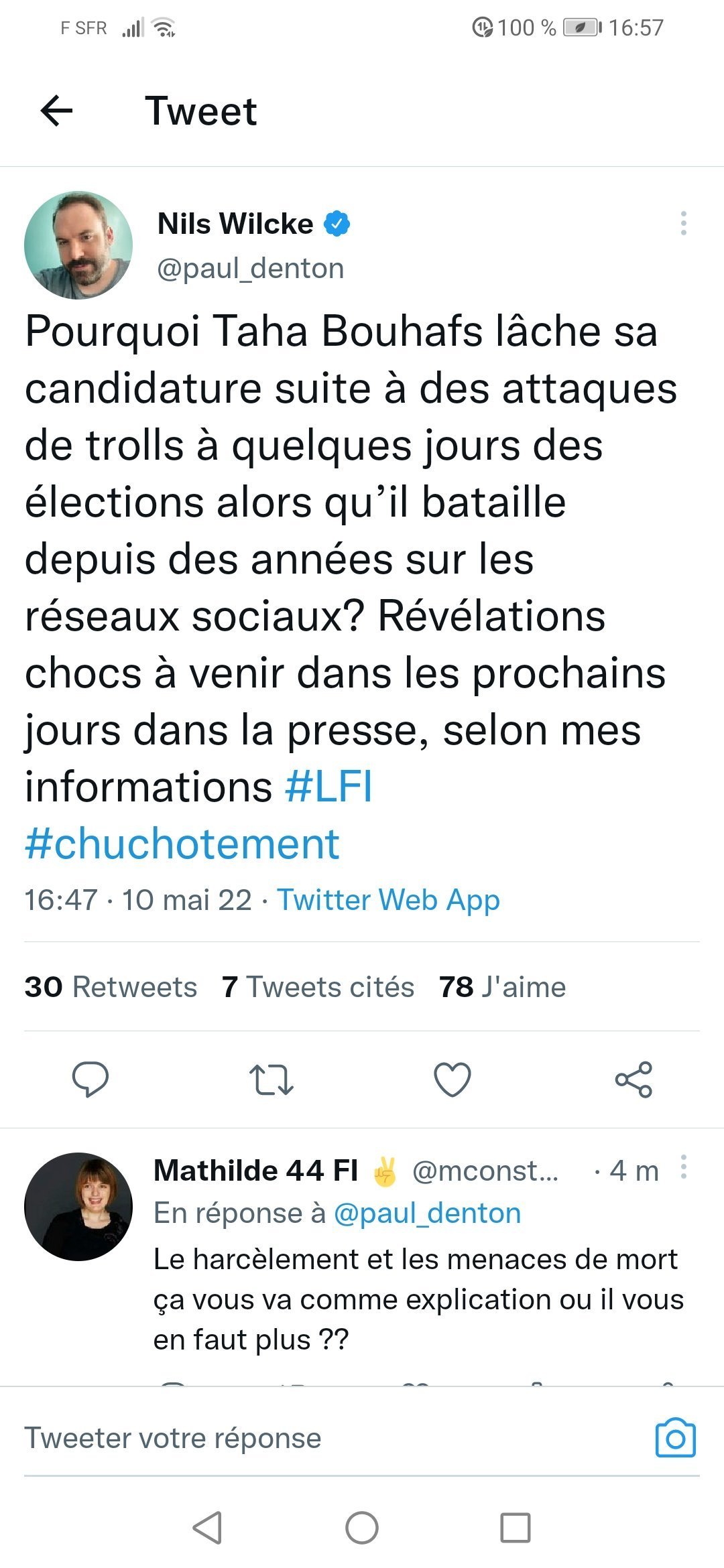 Ayaaa grave erreur d'avoir jarté Taha BouhafsLes polémistes ont vu que leur campagne a fonctionné, du coup ils s'introduisent dans la brèche et continuent de s'attaquer à des candidats NUPES qu'ils aiment pas, c'est au tour de Louis Boyard désormais
