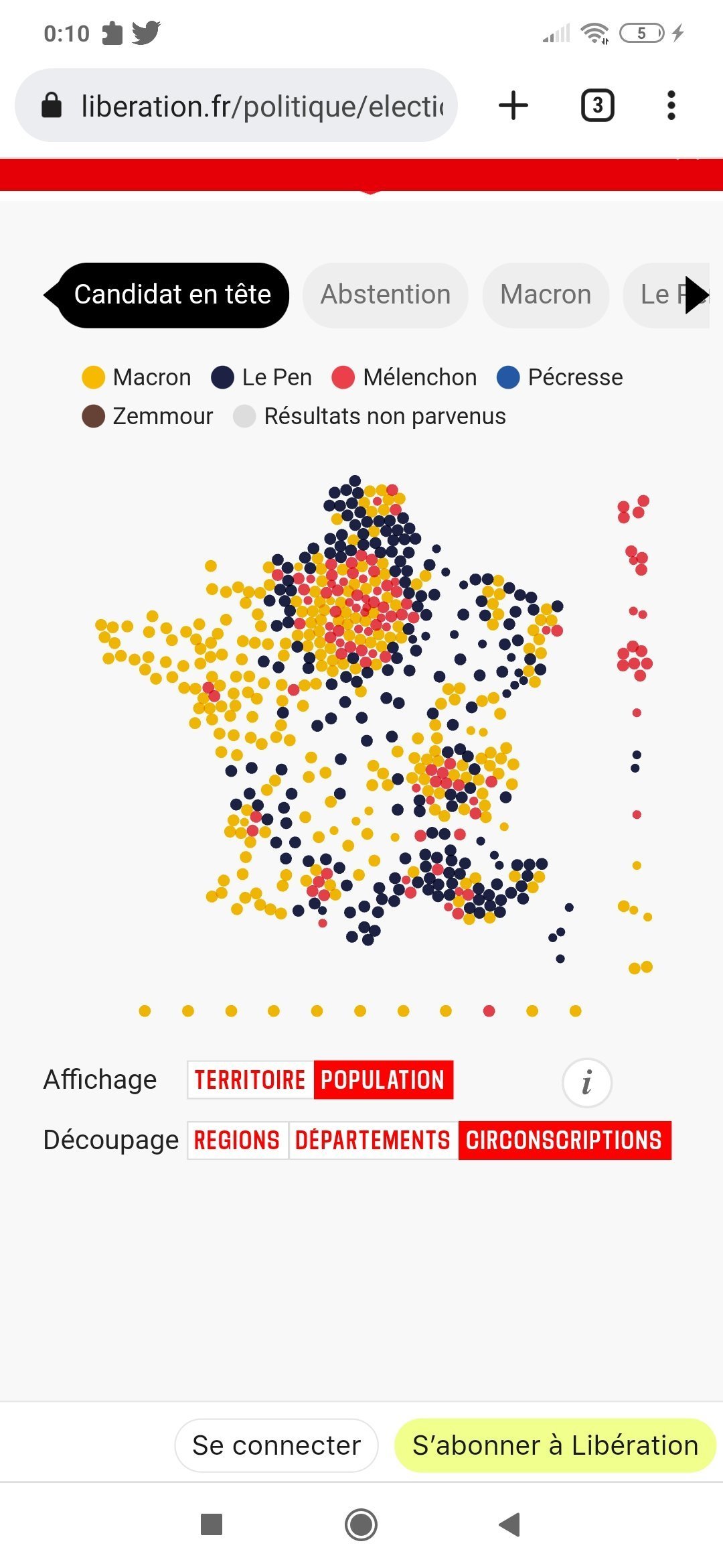 Libération a fait une très bonne carte en fonction du 1er au premier tour par circo, une boule = une circo, histoire d'acoir ls bonne représentation du nombre d'habitants
