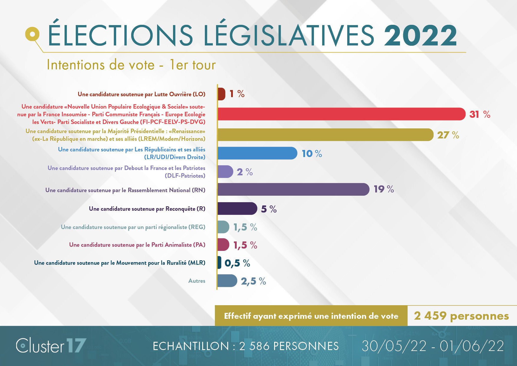 Mouillez vous un peu et faites des projections Cluster 17 bon sangEn sièges ou en pourcentage ?