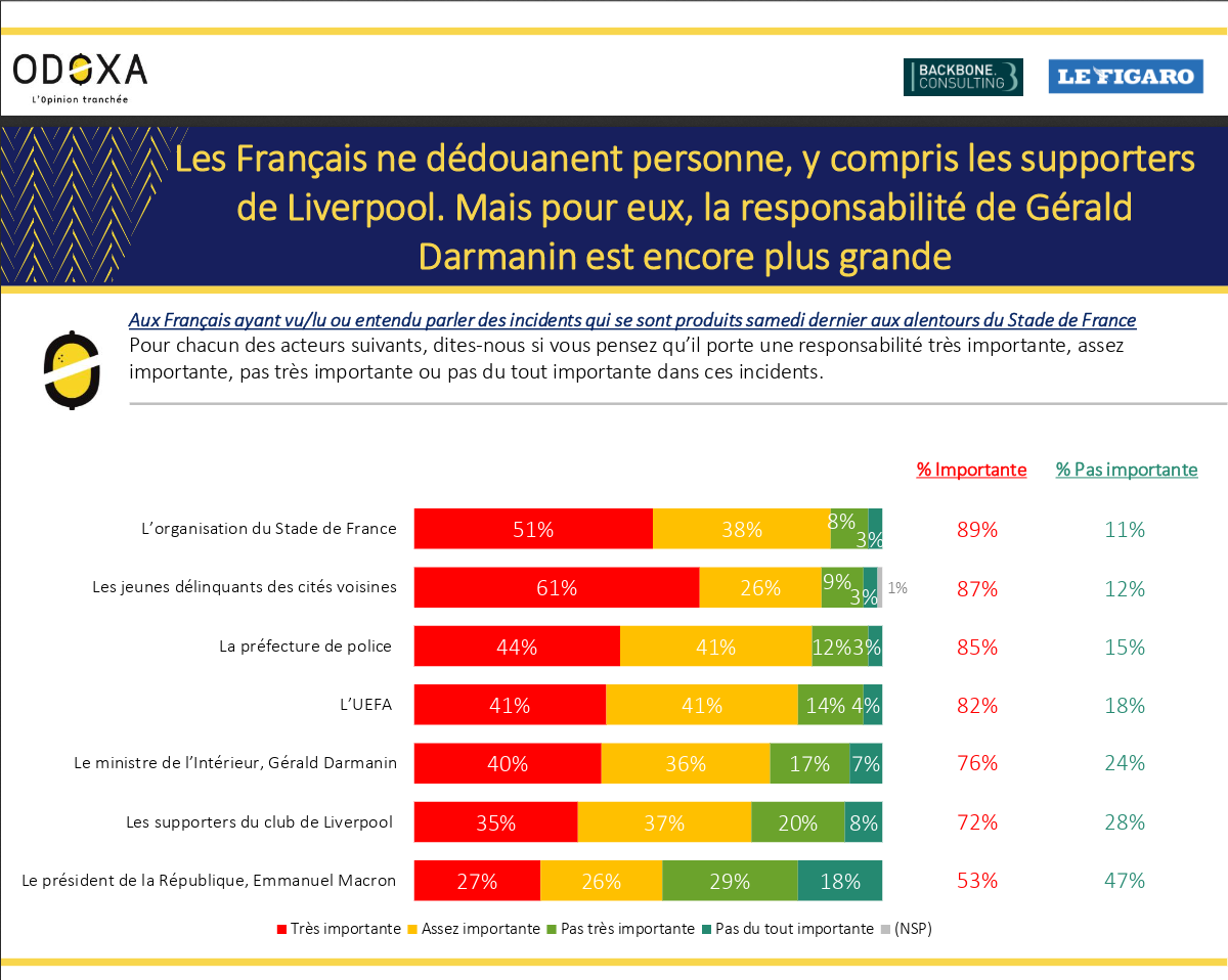72% pensent qu'il y a une responsabilité assez importante voire très importante des supporters de Liverpool