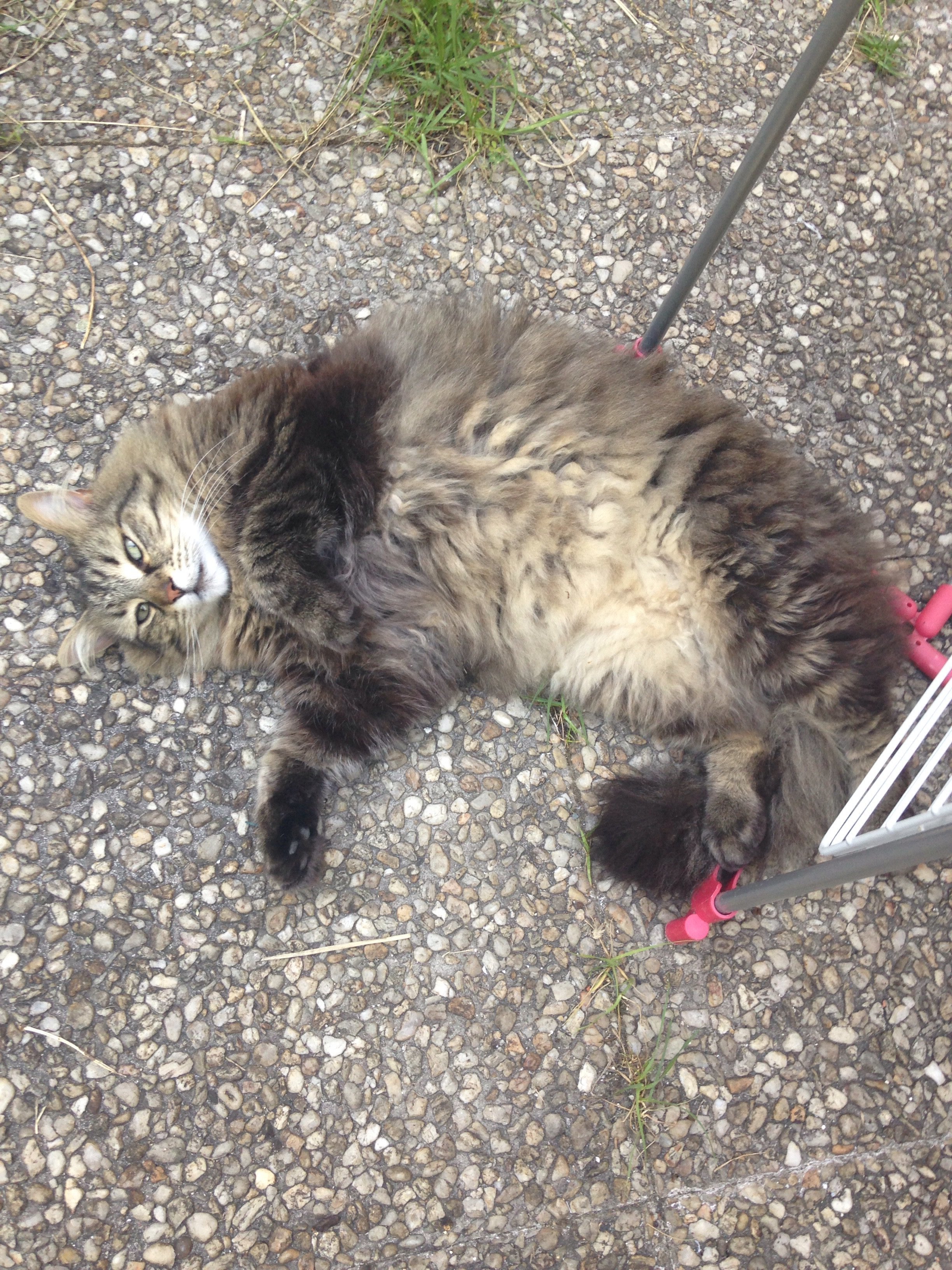 C'est même pas un chat, c'est un énorme porc à poils. Lorsque des gens le voient pour la première fois, ils disent "Ohh mais qu'il est gros !" et ma mère leur répond que c'est ses longs poils qui lui donnent cet aspect. Mais en réalité, il n'est pas gros, il est ÉNORME (il pèse presque 7 kg, dont au moins 500 g de poils).