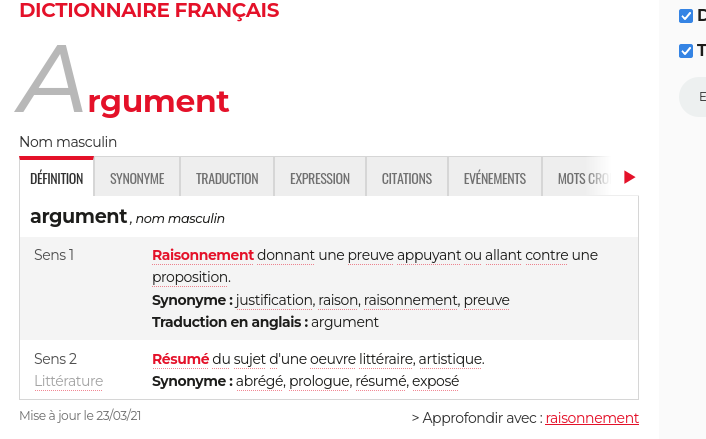 Définition d'argument s'il te plais ?