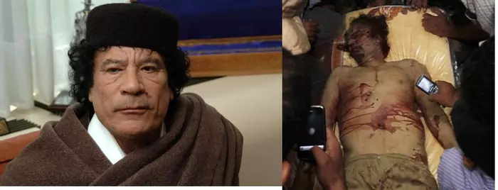 Saddam Hussein : pendaison filmé et diffusé dans le monde entier. Mouammar Kadhafi : Torturé jusqu'à la mort de manière inhumaine sur la place public par une foule de gens en colère.