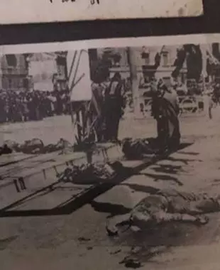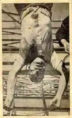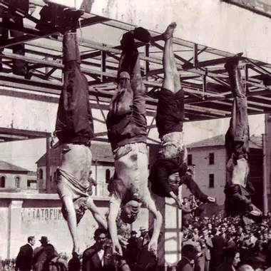 Benito Mussolini : Fusillé. puis pendu par les pieds et explosé sur la place public pour que tout le monde puisse humilier son cadavre. ( cracher sur la dépouille, défigurer le visage ...)