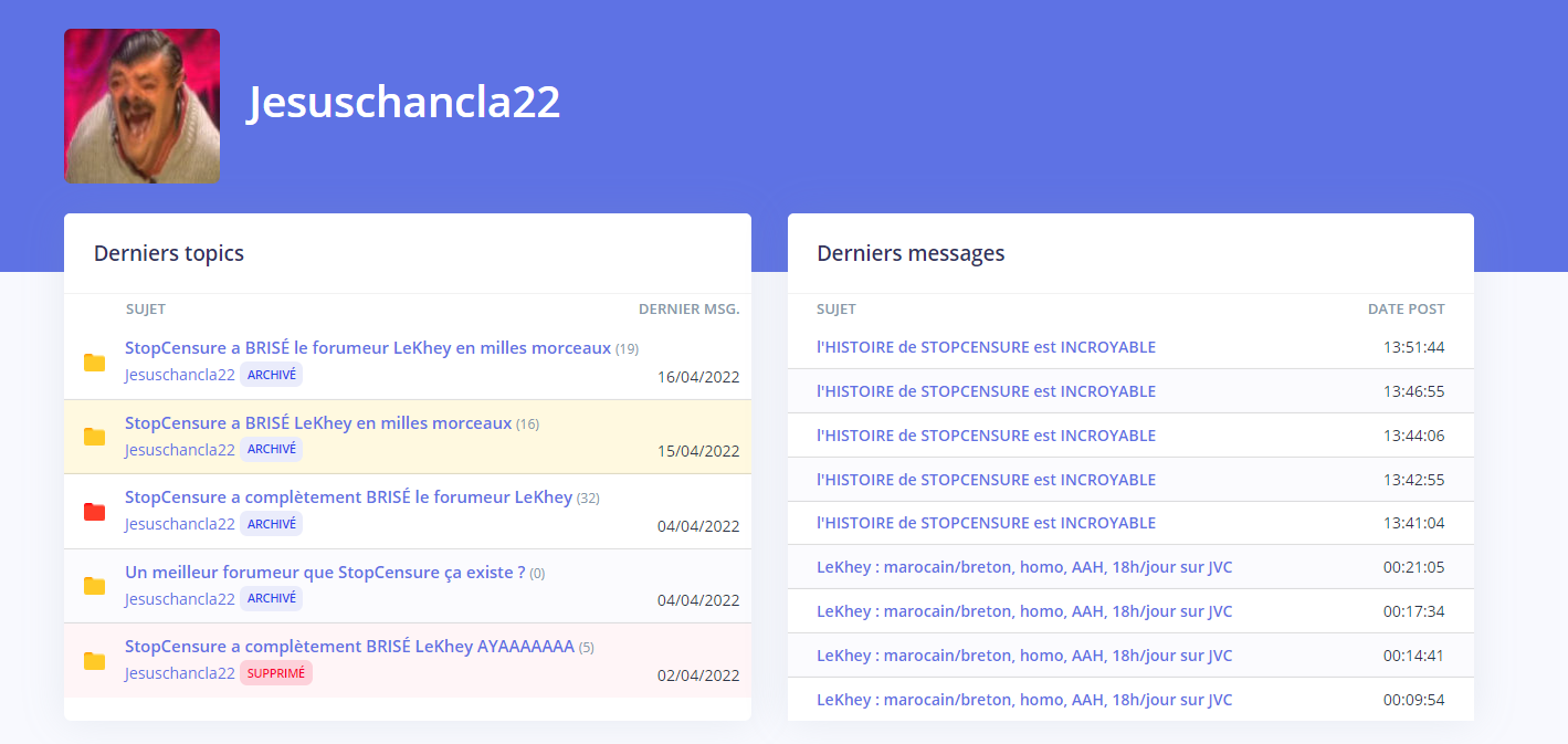 Regarde ce taré qui crée des pseudos pour faire des topics sur lui même et se défendre en parlant à la troisième personne sur des topics :