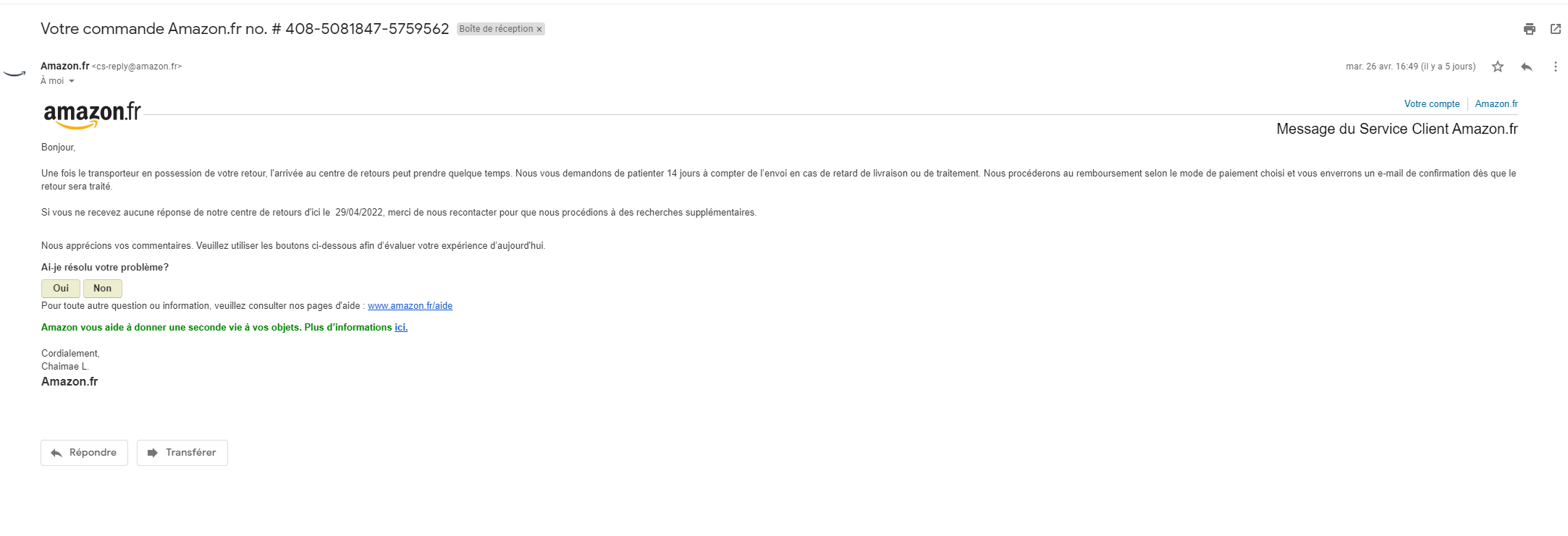 j'ai discuté avec karim et anthony du SAV par téléphone, ils ont la même réponse, l'entrepôt gère