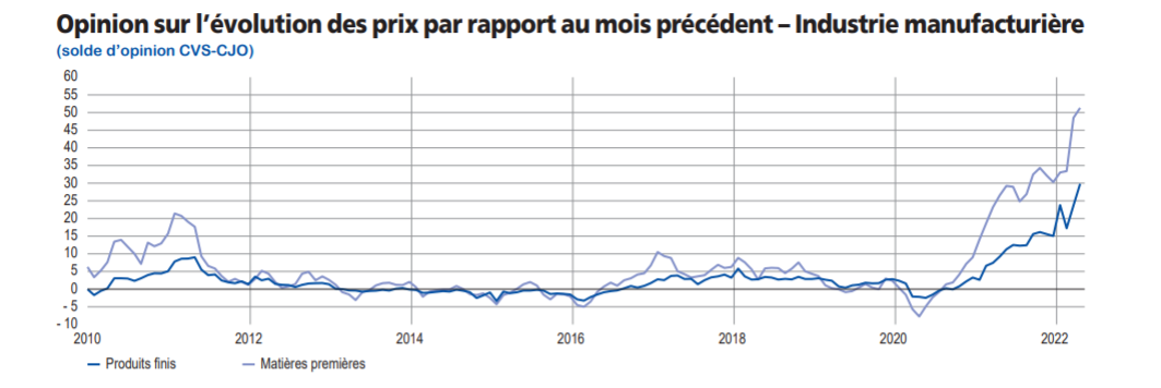 En particulier, 49% des chefs d’entreprise dans l’industrie déclarent avoir augmenté leur prix de vente en avril.