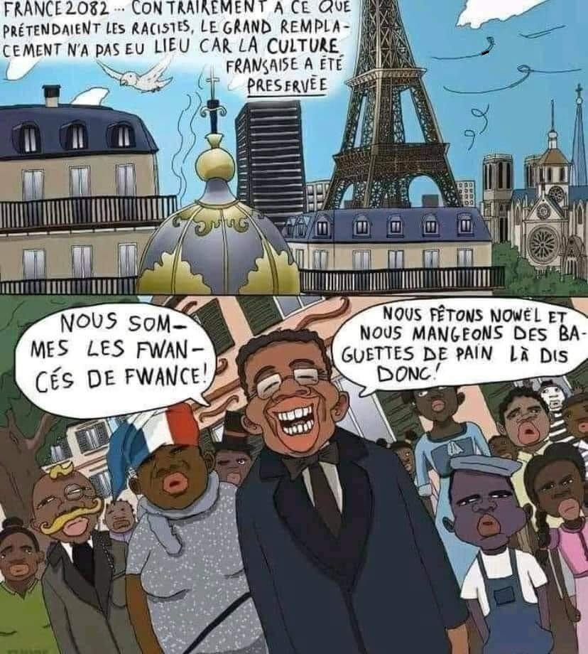 Donc un mec de couleur ne en France, de parents nĂ©s en France (voire plus pour les antillais) qui se sent français, defend la culture française, voire sâengage sous les drapeaux serait moins français quâun blanc « de souche » qui crache sur la France Ă longueur de journĂ©e ?