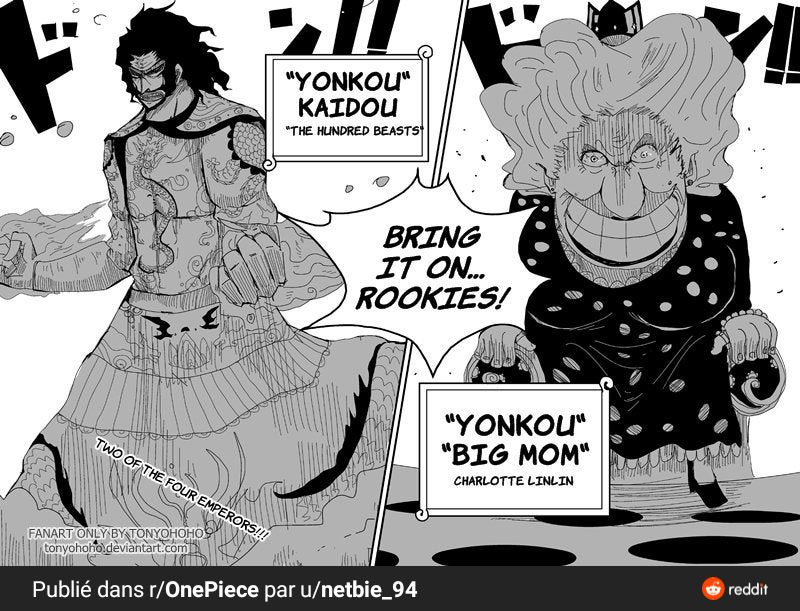 C'est drôle de se dire que avant même de les avoir vu la communauté n'était pas très loin au niveau des design des yonko![]()