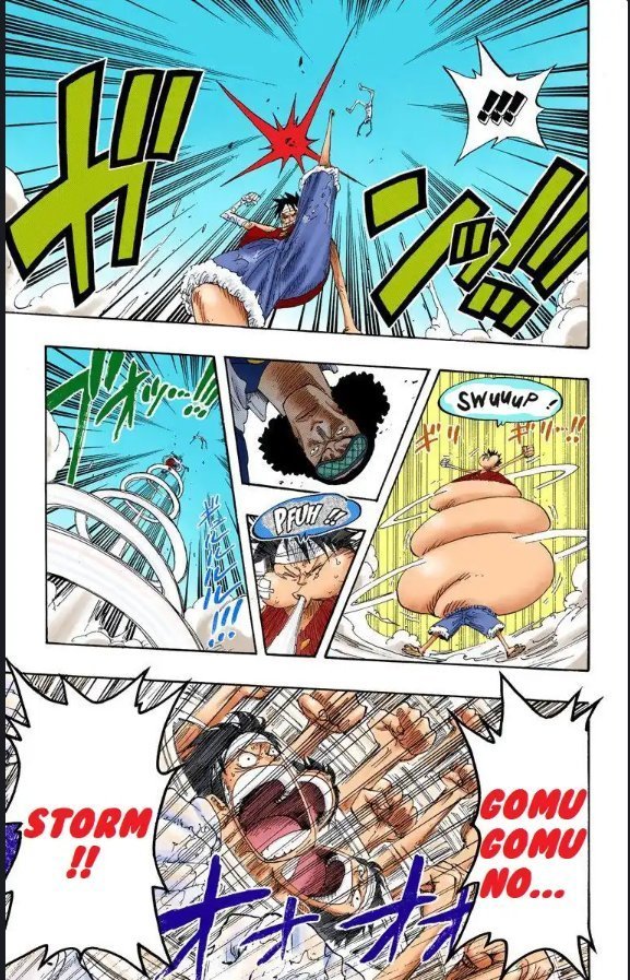 Et après Luffy s'épuise, le dernier round en Gear 4 c'est Luffy qui le OS, dans l'anime ils ont rajouté un clash avec l'attaque de Dofla, mais c'est totalement absent du manga.