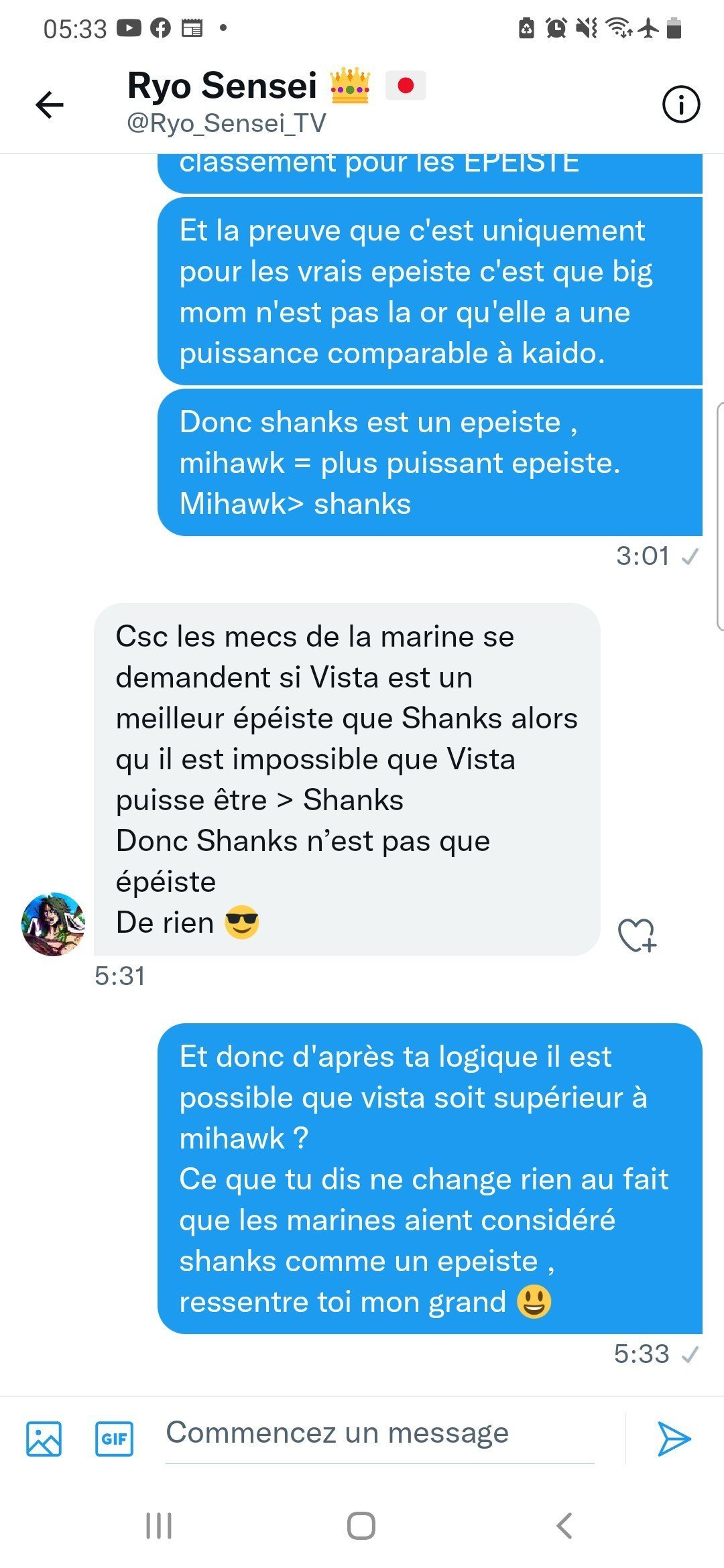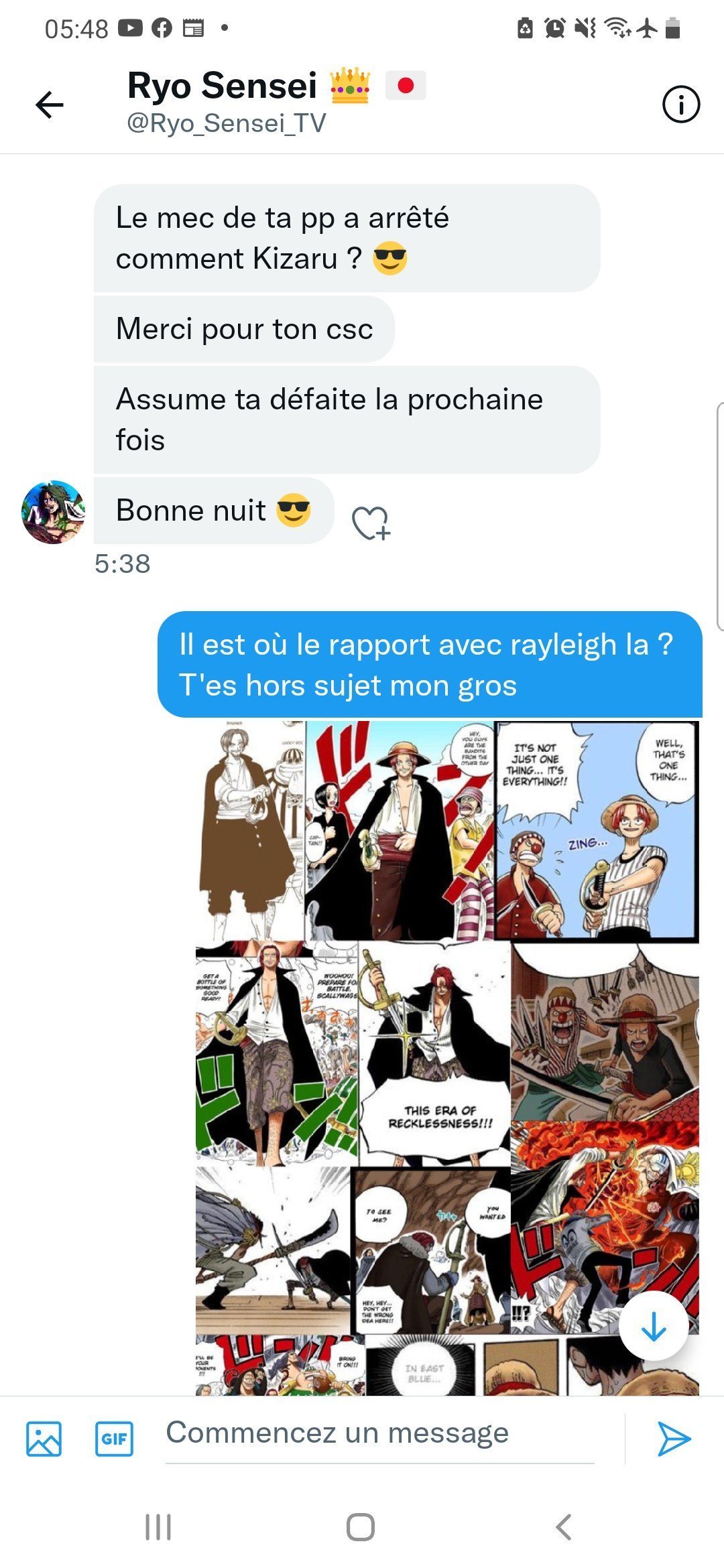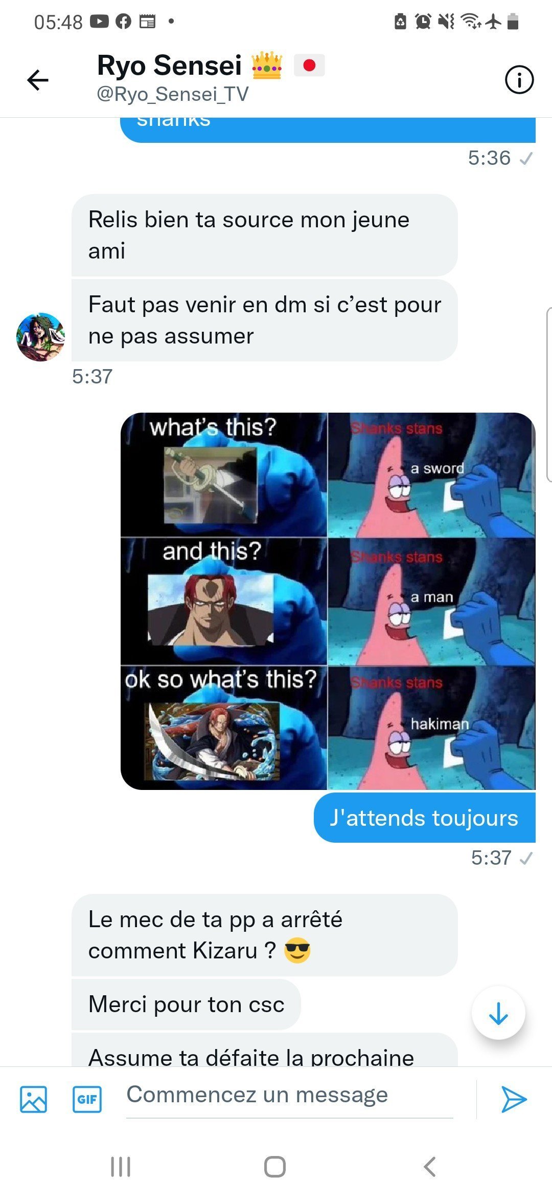 Non il l'a pas, c'est pas comme si yavais kaido juste en face qui l'attendait.